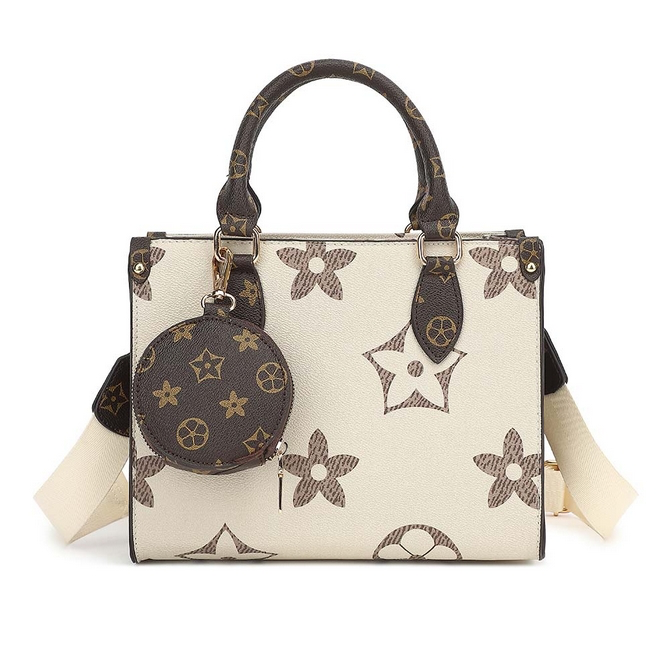 Expertly crafted with a classic apricot star print, this top handle handbag is the perfect accessory for any outfit. Comes with a convenient detachable coin purse to keep your small essentials organized. Made with quality materials for durability and style.
