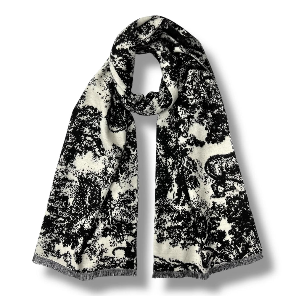 Soft to touch winter forest print on cream canvas. Finished with subtle fringes on each end.