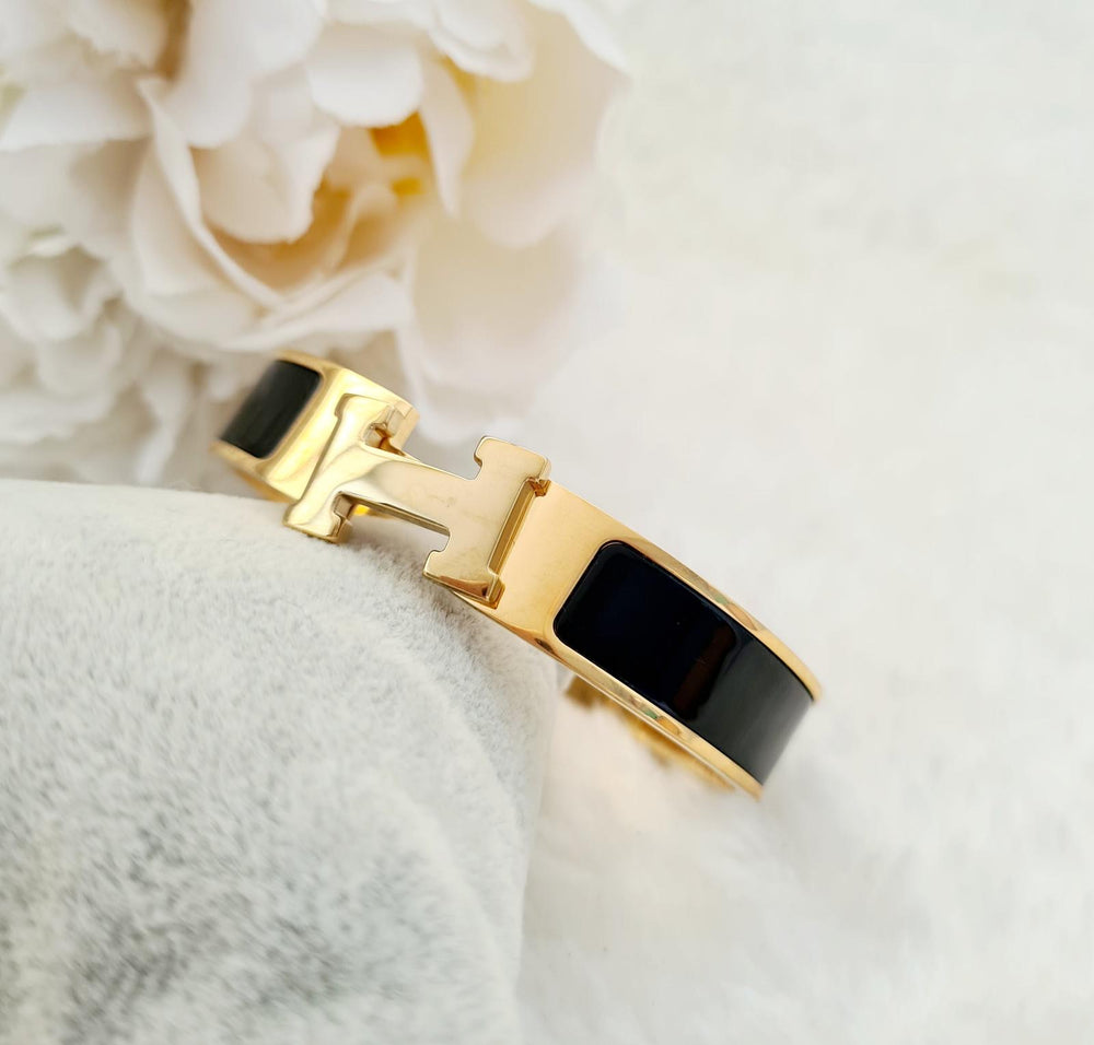 The H Brecelet stainless steel is engineered for durability and resistance to corrosion, offering a long-lasting accessory option. Its stainless steel construction ensures a sleek and polished appearance while minimizing maintenance needs. This bracelet is suitable for various occasions, providing both style and practicality.